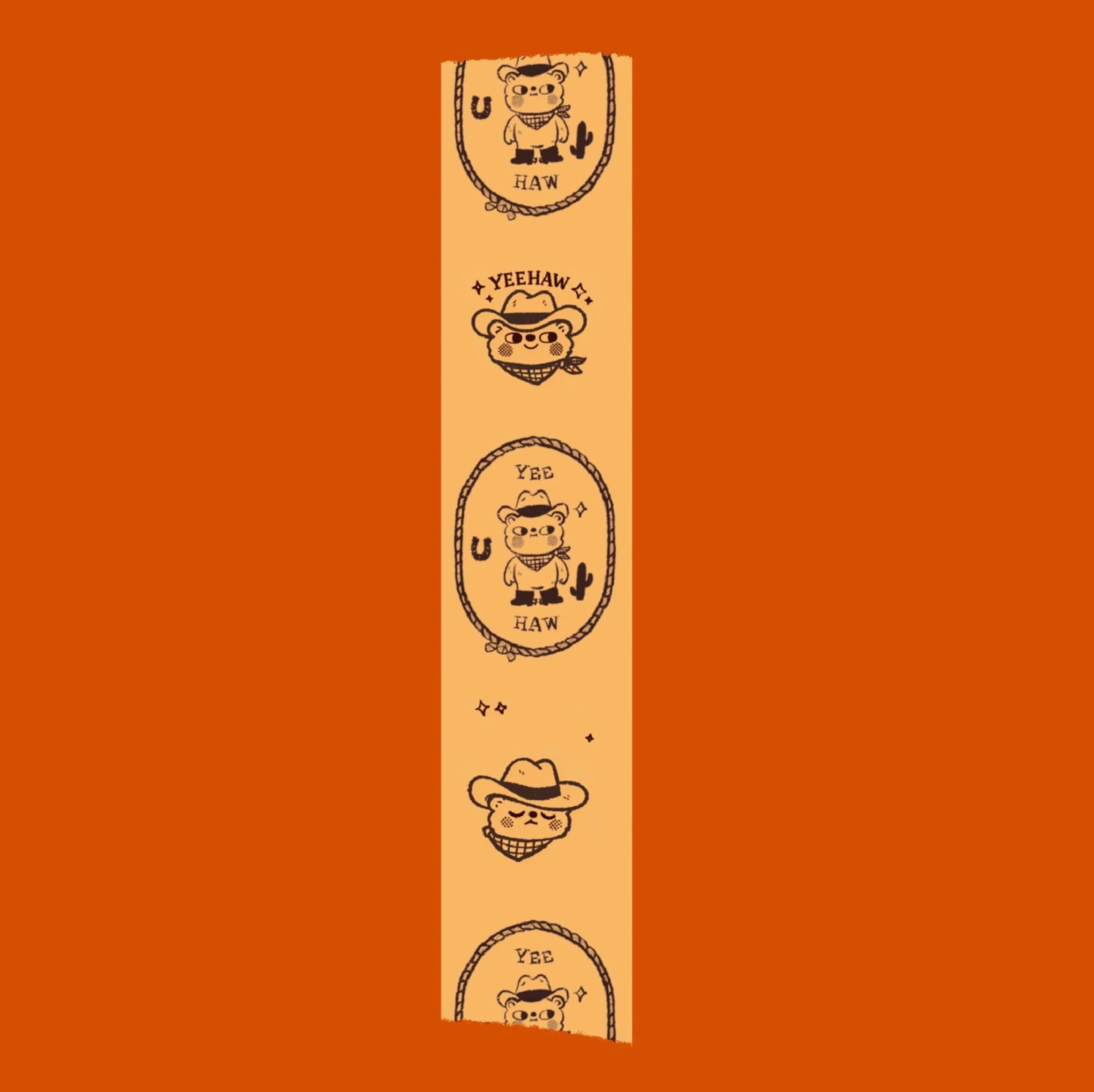 Howdy, partner! This adorable Cowboy Bear Washi Tape features a sweet little bear sporting a classic cowboy hat. Perfect for adding some "wild west" charm to your snail mail, journals, or planners. A must-have for fans of the western aesthetic and cute animals.