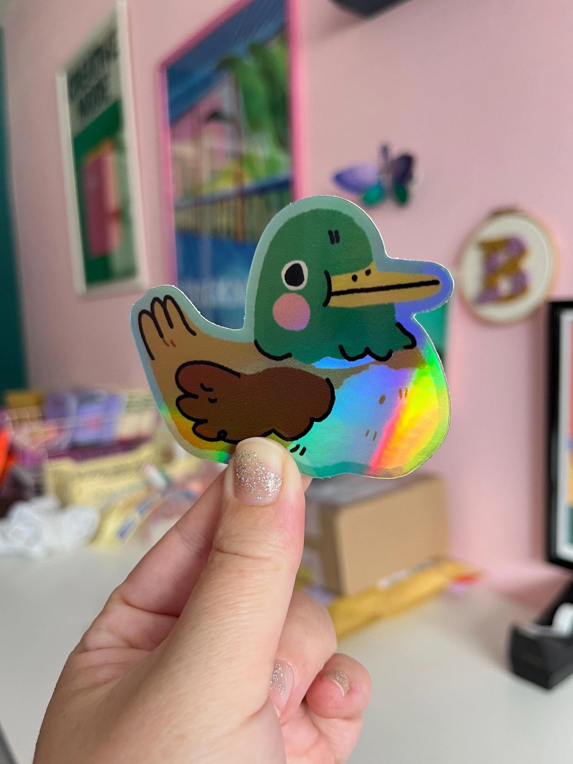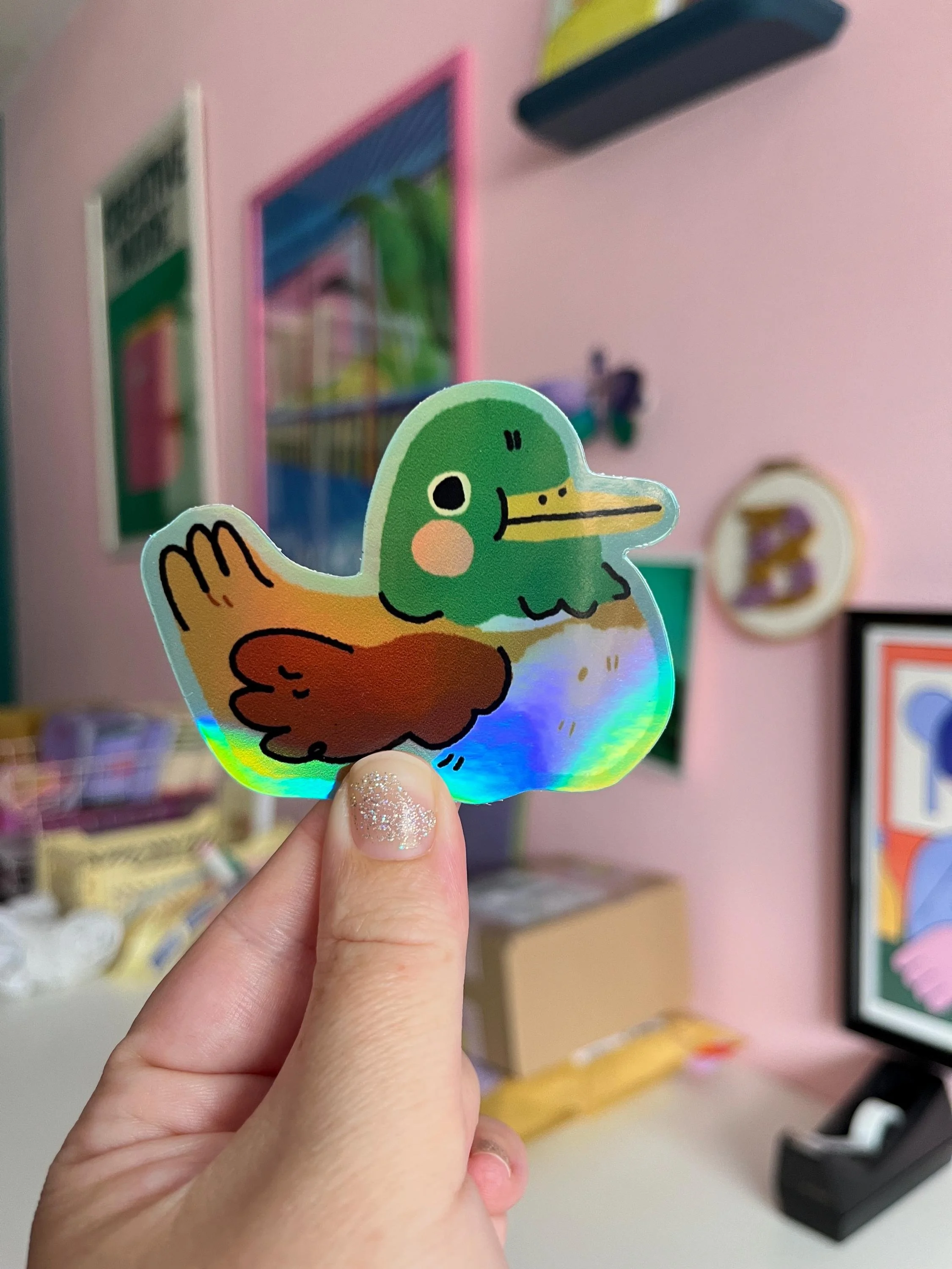 Duck Holographic Vinyl Sticker, Waterproof just like a real duck