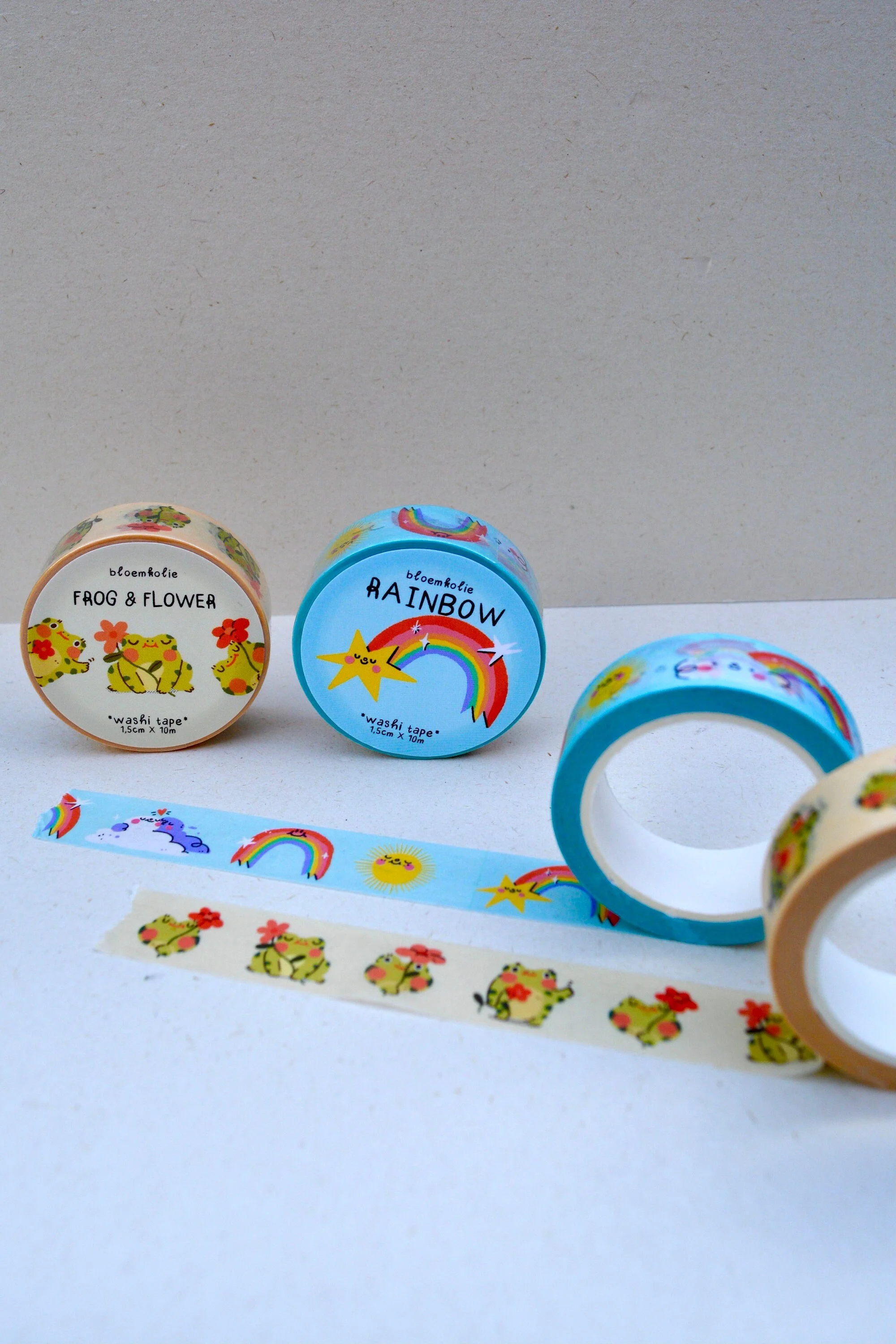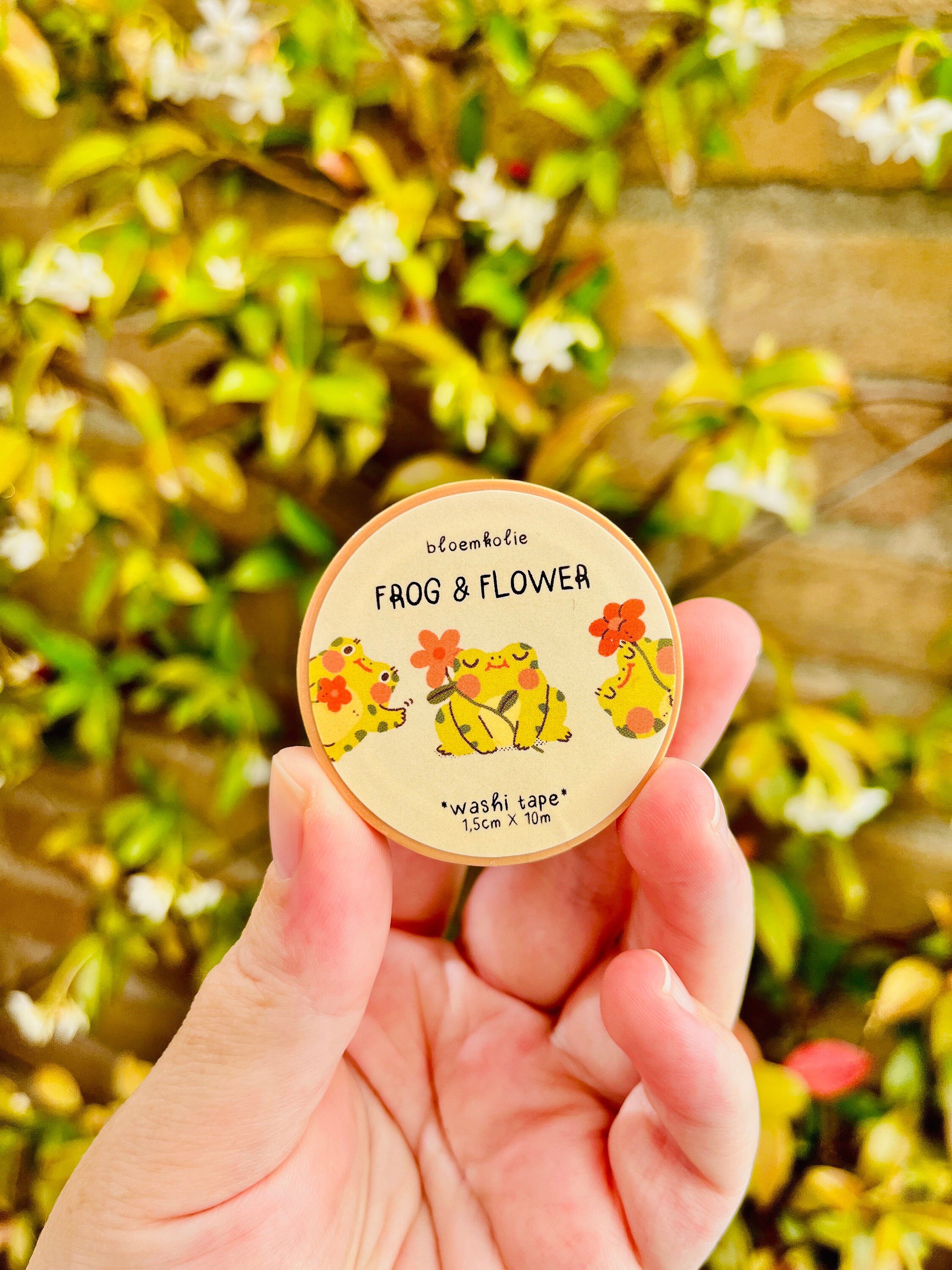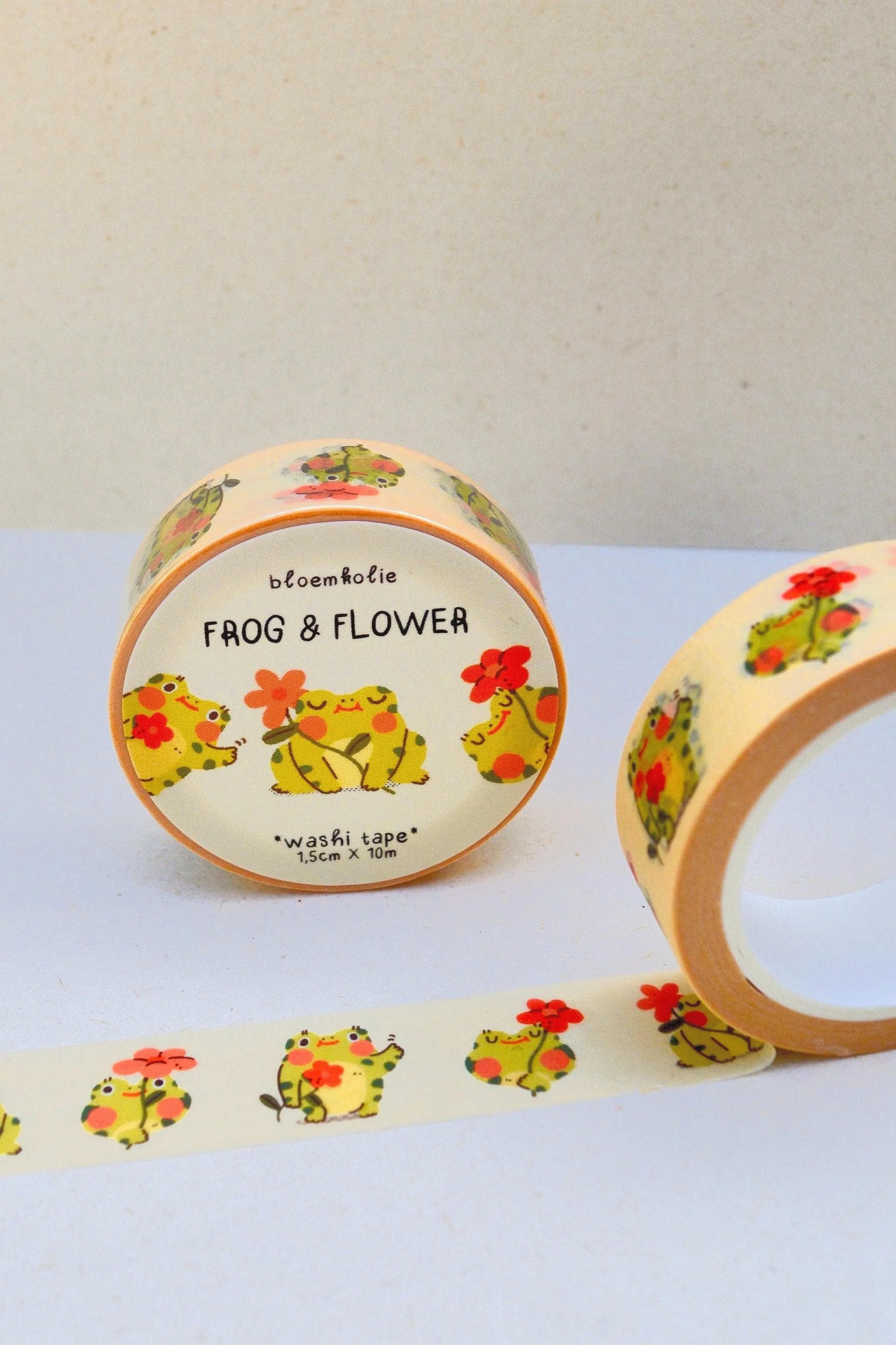 Frog and Flower Washi tape / cute kawaii and quirky stationery / illustration