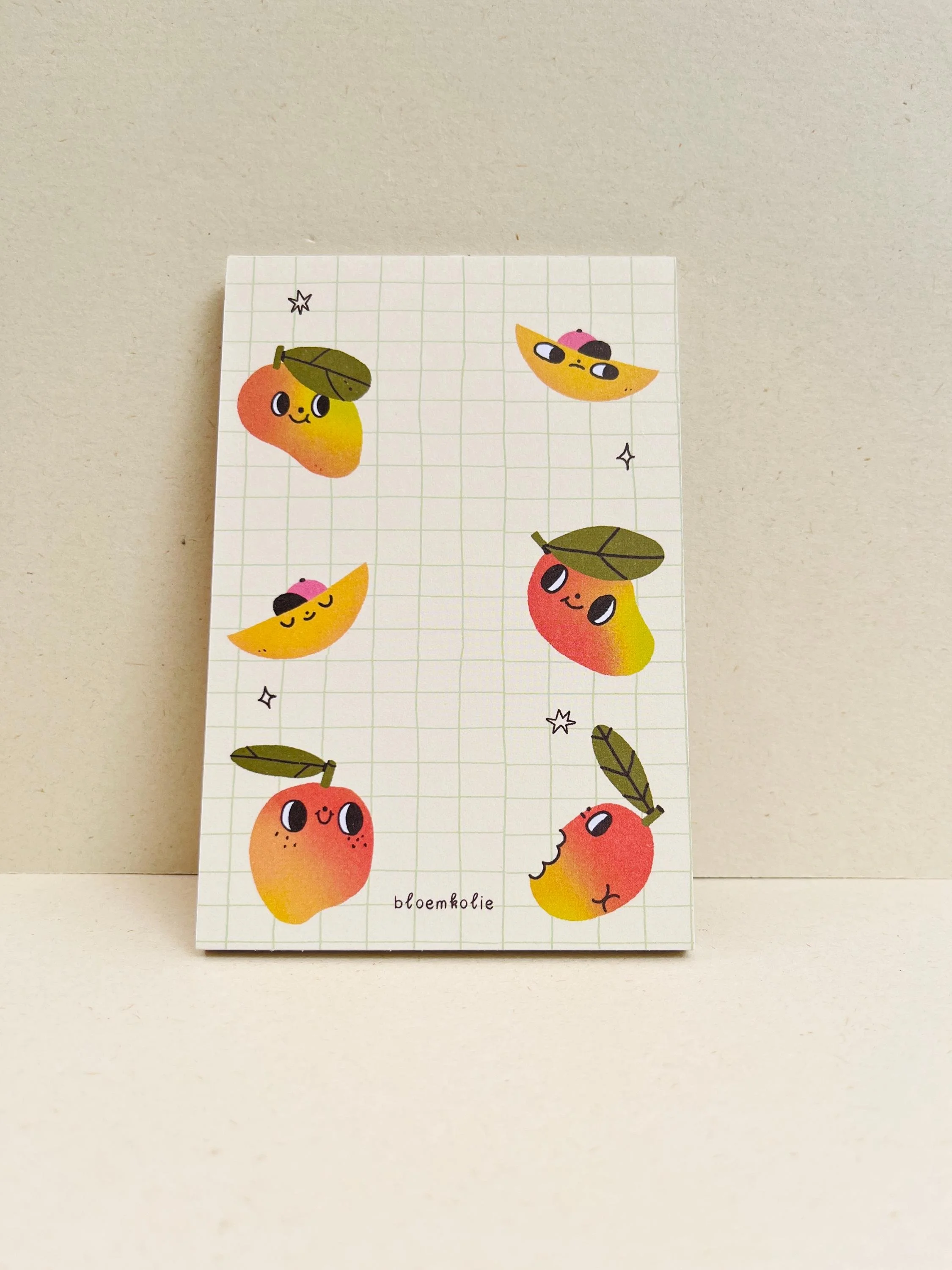 Brighten your day with this Mango Notepad, covered in blushing mango buddies wearing berets and leafy hats! Perfect for making lists, writing sweet notes, or spicing up your planner with some fruity fun. The perfect gift for mango lovers and kawaii stationery fans! 📐 Size: 12 x 8 cm, 50 pages. 🎨 Unique Bloemkolie artwork – fresh, fruity, and fabulous. 💡 Ideal for daily notes, planner pages, or adding tropical vibes to your desk.